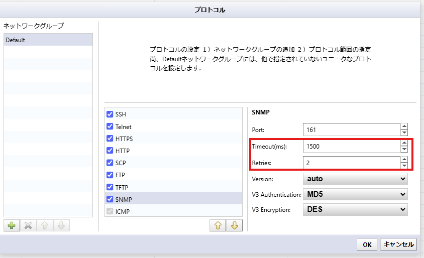 また、必要に応じてプロトコルのRetries数(デフォルトは2)を変更してください。